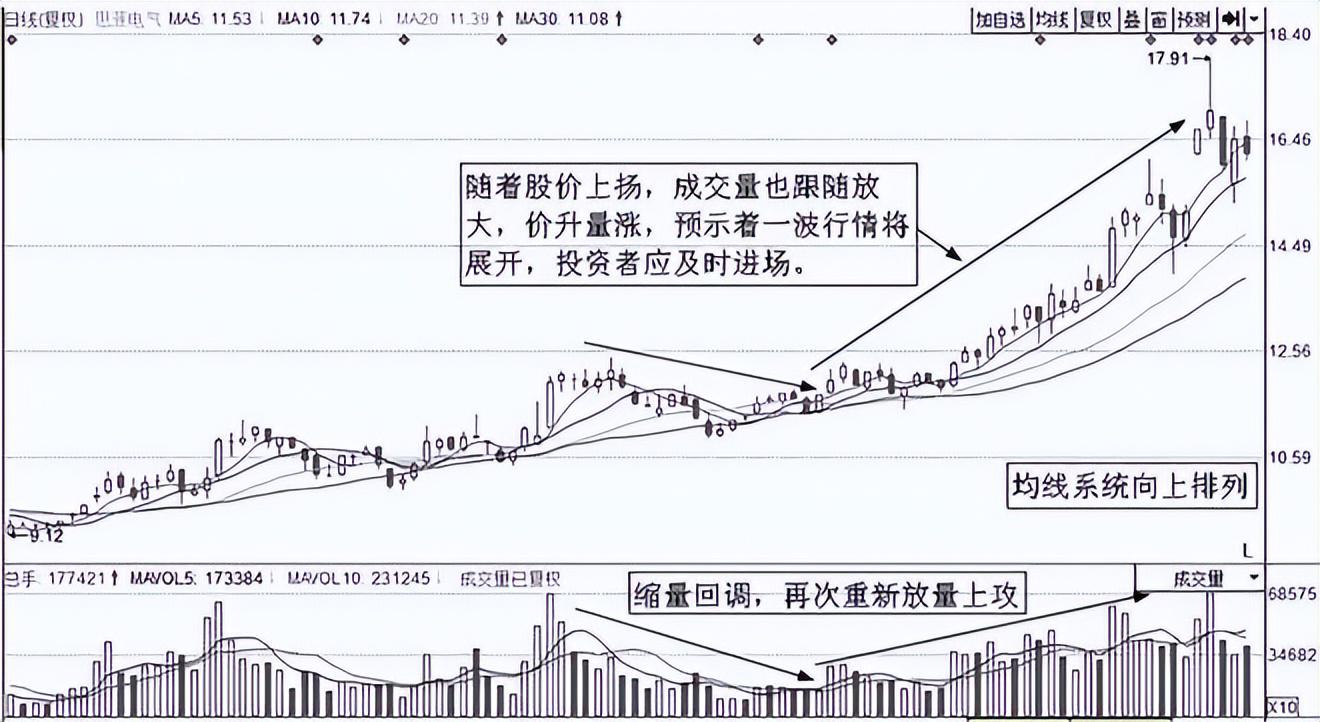 图1-1是思源电气(002028)的走势图,该股在上升中途洗筹,成交量萎缩,随着股价重新上攻,成交量也迅速放大,投资者可以根据量能变化及时介入。