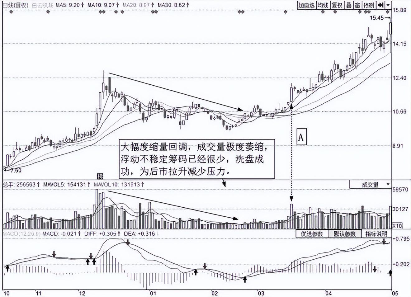 个股运行中,有一个地方是需要缩量的,它就是洗盘部分。主力洗盘是为了洗掉上涨过程中所产生的部分不稳定的获利盘及短线浮筹,随着洗盘的深入,获利盘及短线浮筹自然会逃离,洗盘的目的便达到。
