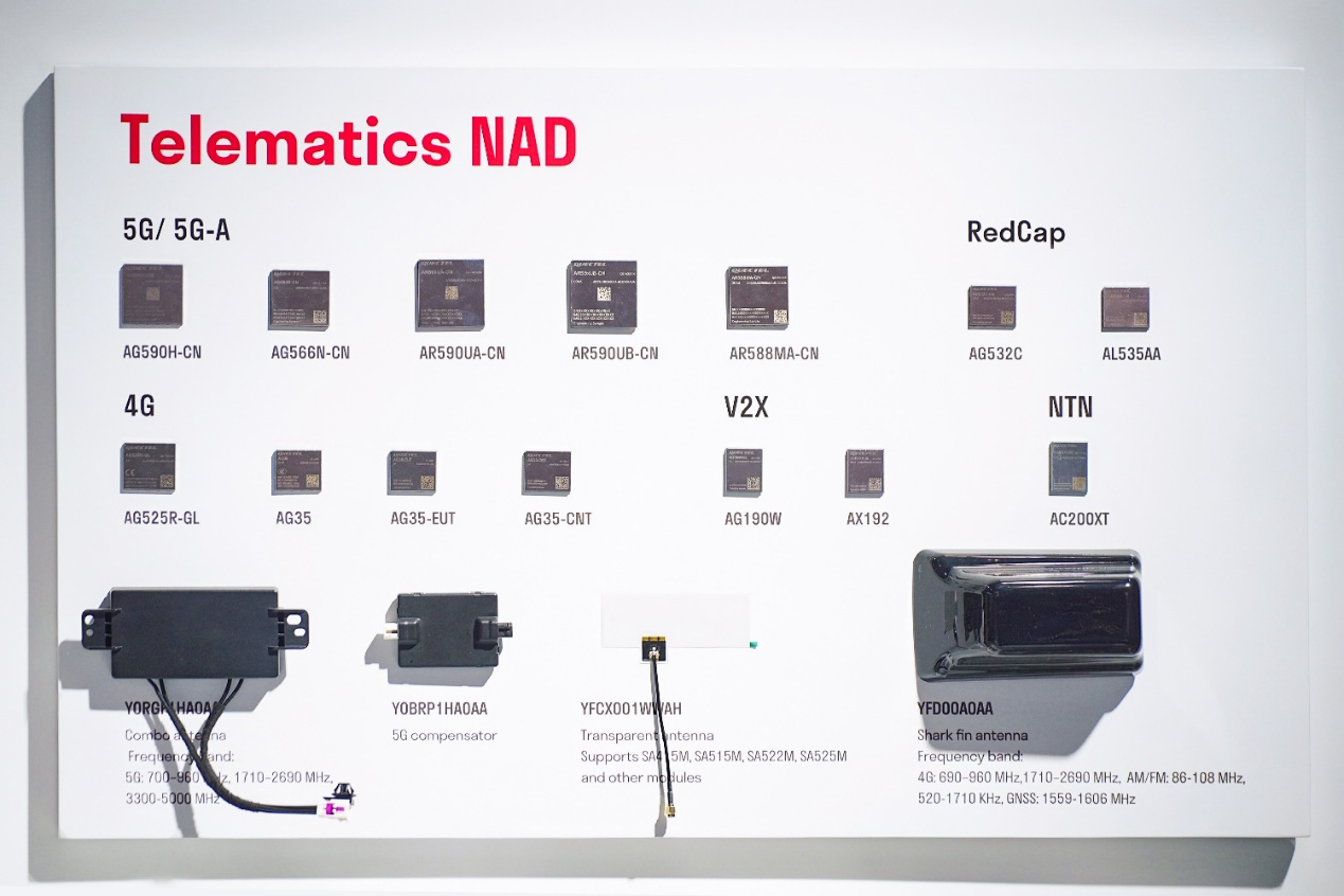 5G/5G-A模组:基于多平台打造的全新系列模组,显著提升实时数据回传效率与时延响应表现,同时支持双卡双通(DSDA)能力,为车辆带来更稳定、更灵活的网络覆盖。