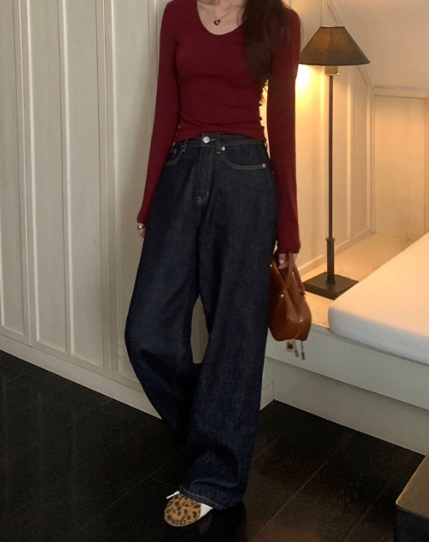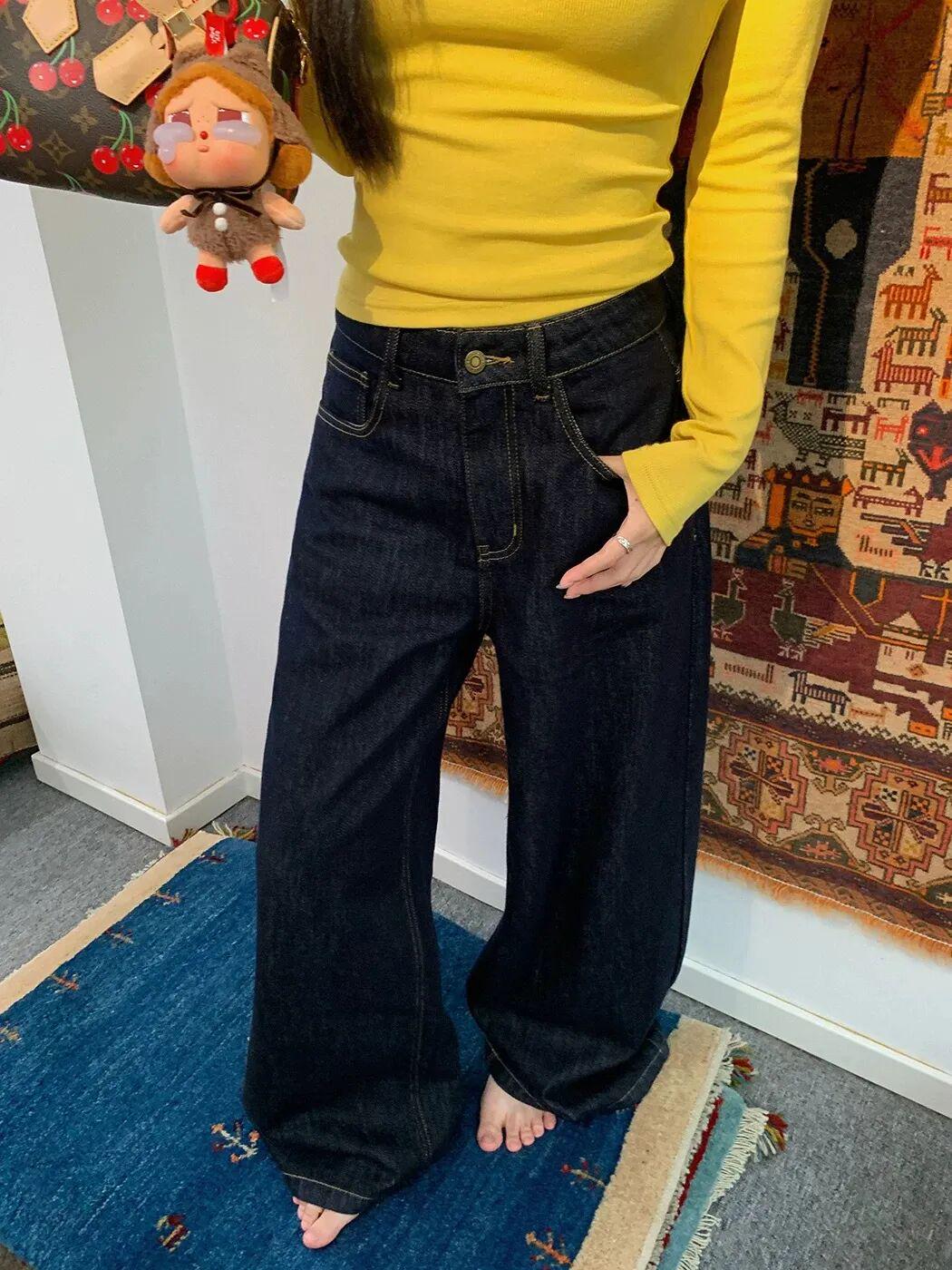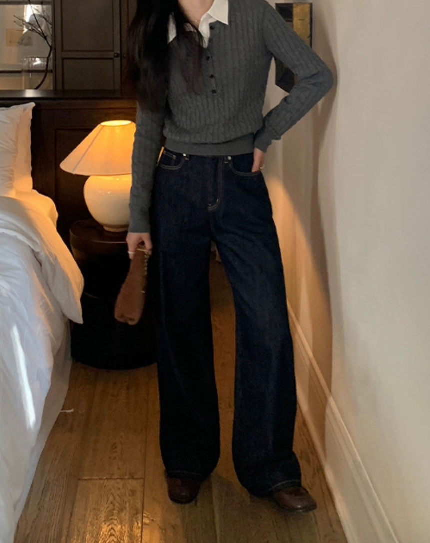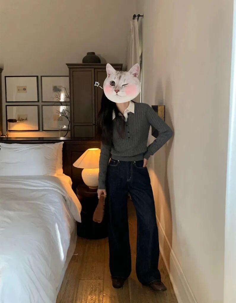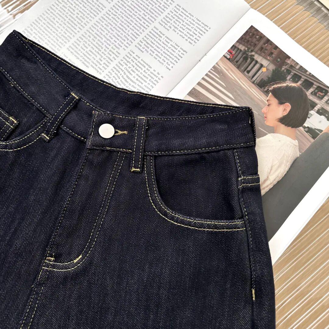 深色的牛仔面料质感细腻有光泽,上身就透着沉稳内敛的高级感,完全不像100多块钱的裤子,反而像好几百块的专柜品质