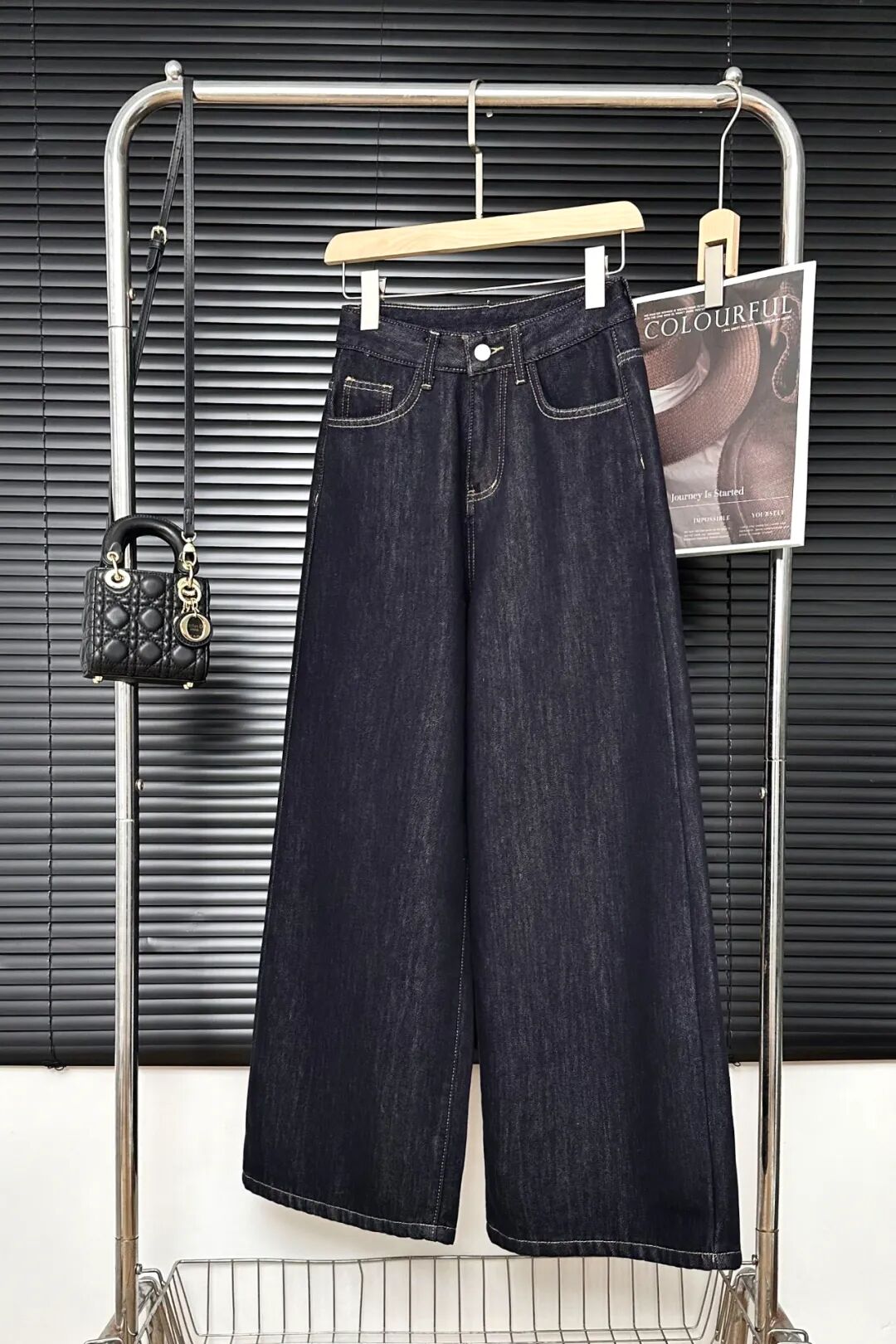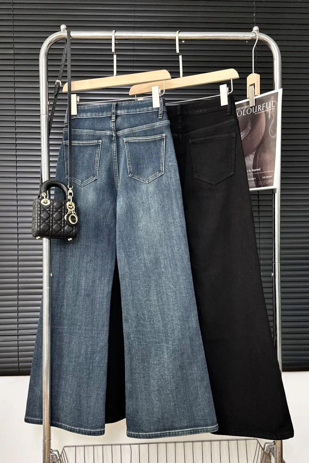 阔腿裤是经典丹宁蓝;微喇裤有复古蓝与高级神秘黑。