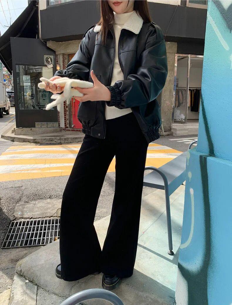 这条微喇裤内里加了厚实的绒毛,穿上就像随身揣了个小暖炉,冷天出门腿根都不带凉的。